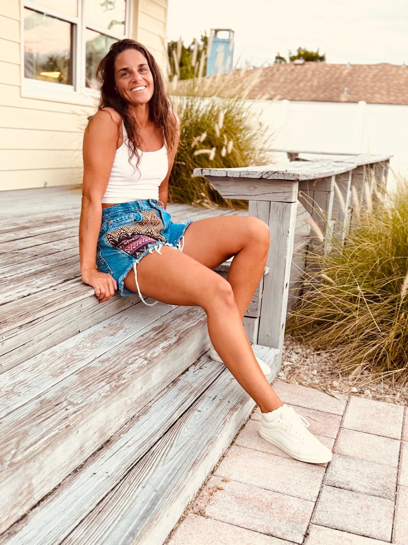 Each pair is re-tailored from a secondhand pair of Levi’s jeans, giving them new life and an updated fit. Denim shades vary. Each one is unique!